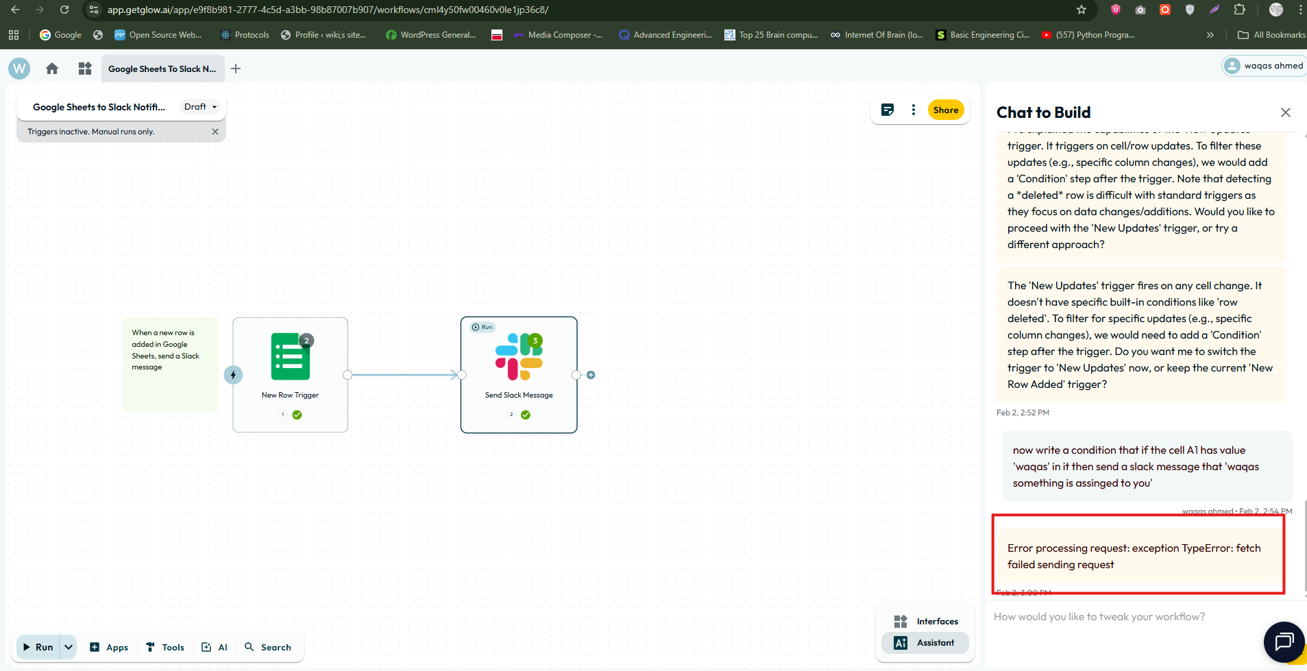 Enter a request or instruction to build/modify a workflow.